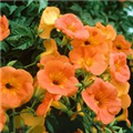 Von Juni bis September bringt Campsis x tagliabuana 'Summer Jazz Gold'® leuchtend orangegelbe Blüten hervor.