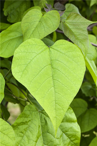 Dieses sommergrüne Laubgehölz trägt mittelgrüne Blätter. Sie sind gegenständig angeordnet, herzförmig. Die Blätter sind etwa 10 cm bis 20 cm groß. Im Herbst färbt sich das Laub gelb.
