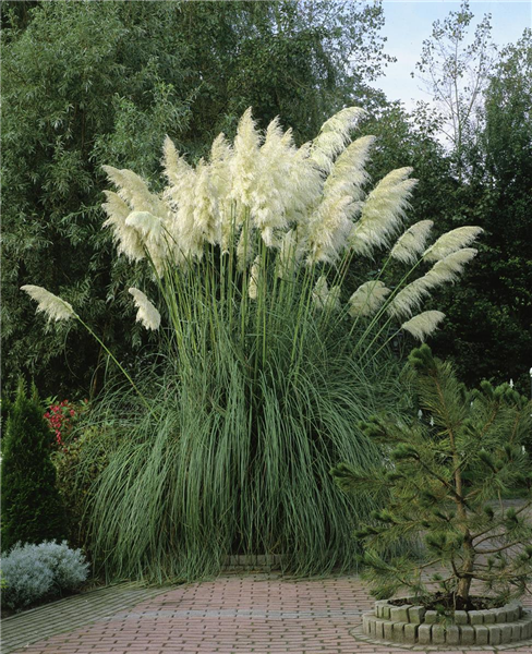 Garten-Pampasgras 'Giant' harmoniert besonders gut mit Rose und Wacholder.