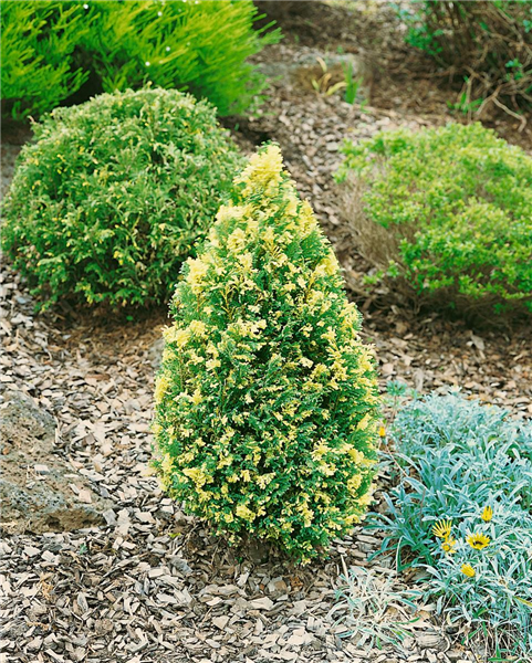 Chamaecyparis lawsoniana 'Silver Tip' hat einen geringen Wasserbedarf.