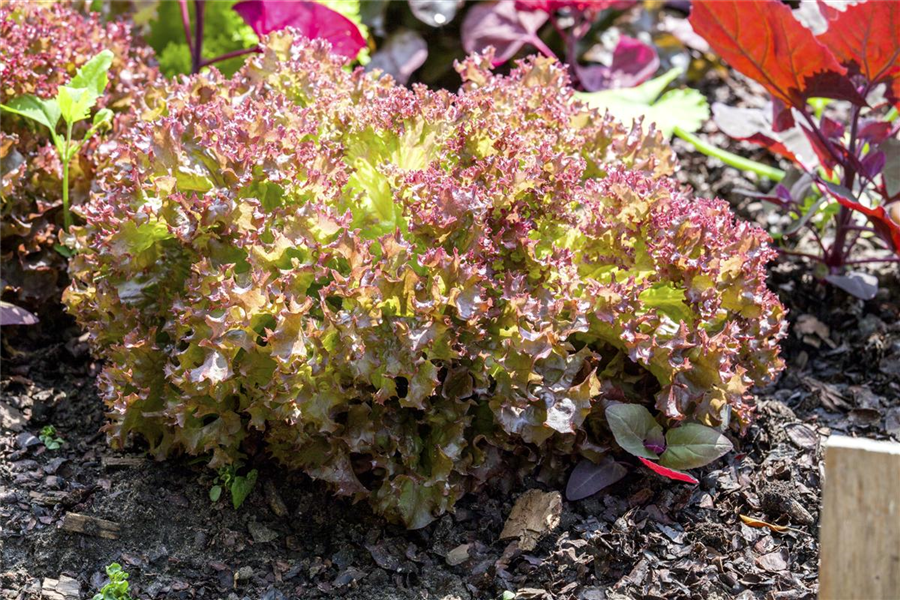 Pflücksalat 'Lollo rosso' harmoniert besonders gut mit Erbse, Kohlrabi, Radieschen und Gewöhnlicher Fenchel.