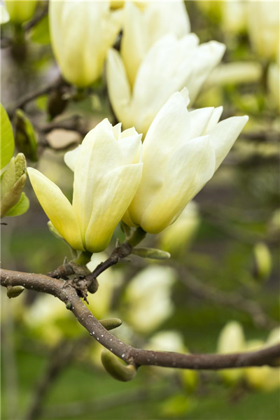 Von März bis April bringt Magnolia denudata 'Yellow River' becherförmige, gelbe Blüten hervor. Bemerkenswert ist der angenehmen Duft, der von ihnen ausgeht.