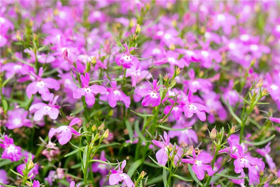 Von Mai bis Oktober bringt Lobelia erinus 'Bella Rosa' rosafarbene Blüten hervor.