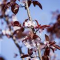 Von März bis April bringt Prunus cerasifera 'Nigra' schalenförmige, rosafarbene Blüten hervor. Sie werden etwa 2 cm bis 3 cm groß.