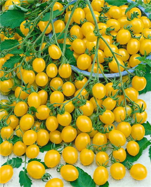 Tomate 'Gelbe Dattelwein' harmoniert besonders gut mit Basilikum, Kapuzinerkresse, Krause Petersilie, Pfefferminze, Ringelblume, Tagetes, Echter Waldmeister und Zinnie.