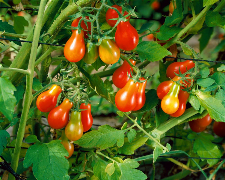 Tomate 'Red Pear' harmoniert besonders gut mit Basilikum, Kapuzinerkresse, Krause Petersilie, Pfefferminze, Ringelblume, Tagetes, Echter Waldmeister und Zinnie.