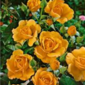 Von Juni bis September bringt Rosa 'Amber Queen'® schalenförmige, bernsteingelbe Blüten hervor. Sie sind in Dolden angeordnet.