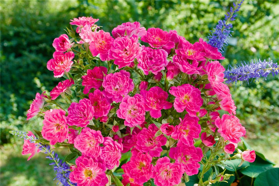 Bodendeckerrose 'Magic Carpet' harmoniert besonders gut mit Steppen-Salbei, Lavendel und Waldrebe.