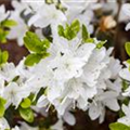 Von Ende Mai bis Mitte Juni bringt Rhododendron obtusum 'Kermesina Alba' trichterförmige, weiße Blüten hervor. Sie werden etwa 2 cm bis 3 cm groß.