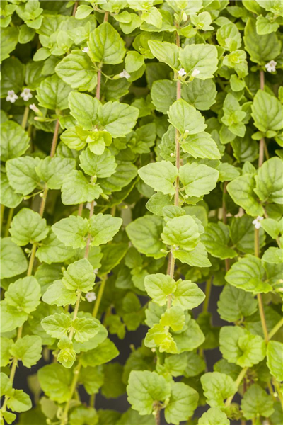 Diese sommergrüne Kräuterpflanze trägt hellgrüne Blätter mit minzigem Geschmack. Sie sind rundlich.