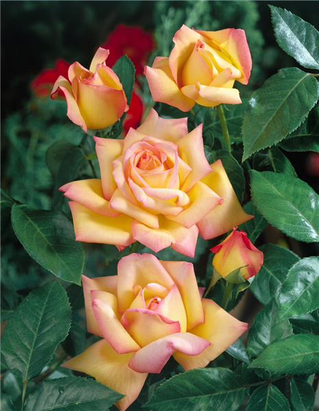 Edelrose 'Peace' harmoniert besonders gut mit Steppen-Salbei, Lavendel und Waldrebe.
