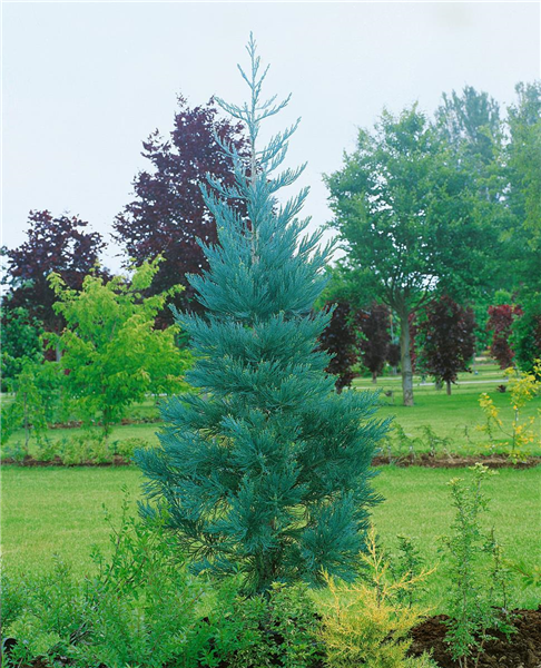 Dieses immergrüne Nadelgehölz trägt blau-graue Nadeln. Sie sind schuppenförmig.