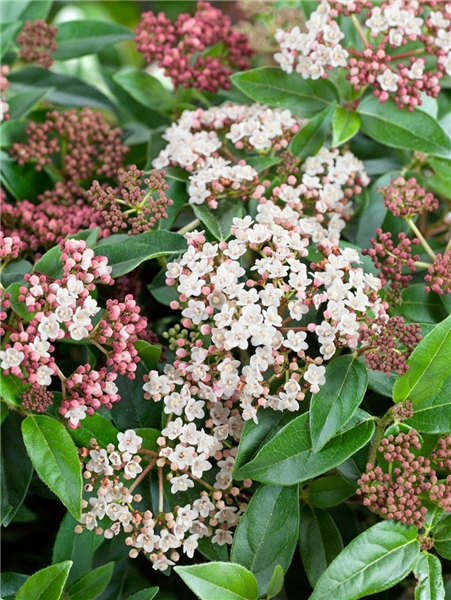 Viburnum tinus 'Eve Price' hat einen geringen Wasserbedarf.