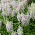 Von Juli bis September bringt Astilbe chinensis 'Milk and Honey' weiße Blüten hervor. Sie sind in Rispen angeordnet.