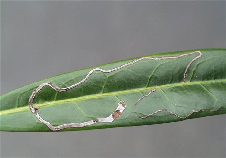 In den Blättern verschiedener Laubgehölze entstehen direkt unter der Blatthaut Fraßgänge von geschlängelter oder auch unregelmäßiger Form. Diese Blattminen erscheinen blass-grau oder braun. Öffnet man sie, so findet man in einigen Fällen die kleinen Larven und vor allem die Kotkrümel dieser Tiere.