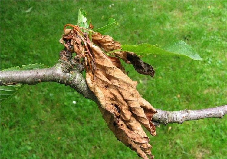 Ein Verkahlen der ganzen Krone, wie es bei Sauerkirsche beobachtet werden kann, findet i.d.R. nicht statt.