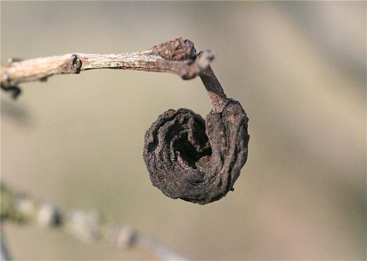 Ein Teil der befallenen Früchte trocknet ein und bildet Fruchtmumien, die den Winter über am Baum hängen bleiben.