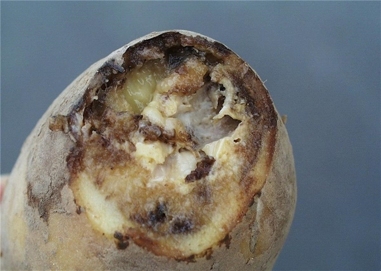Feuchte Witterungsbedingungen fördern den Befall der Knollen mit bakteriellen und pilzlichen Fäuleerregern.