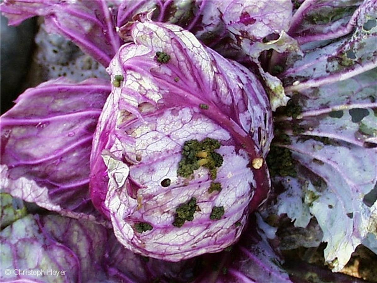 Einige der an Kohl vorkommenden Raupen bohren sich tief in die Köpfe von Rot Weiß oder Chinakohl oder die Blume von Brokkoli und Blumenkohl ein.