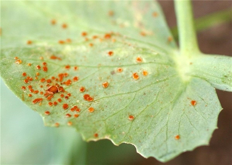 Im Spätsommer findet man auf den Blattunterseiten von Erbsen rot bis dunkelbraune, stäubende Pusteln, die aus der unteren Blatthaut hervorbrechen.