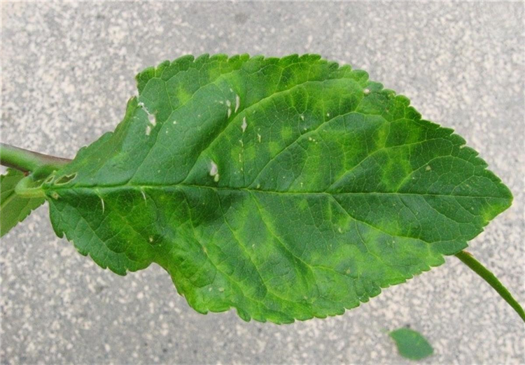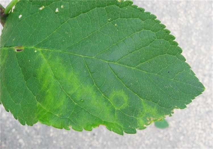 Die Scharkakrankheit ist normalerweise schlecht zu erkennen. Im Juli/August zeigen die Blätter wolkenartige oder ringförmige, verwaschene Aufhellungen. Insgesamt ist das Wachstum befallener Bäume gebremst.