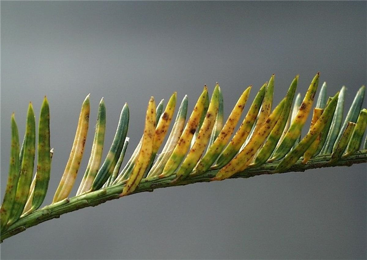 Für Vergilbungen und Verbräunungen der Nadel kommen verschieden Schadursachen in Frage. Trockenheit und Salzstress können die genannten Schäden ebenso hervorrufen, wie verschiedenen Pilze, die die Nadeln infizieren.