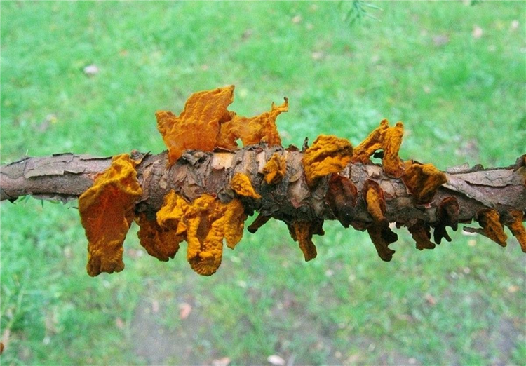 An spindelförmig verdickten Ästen verschiedener Wacholderarten bildet sich im Frühjahr (April, Mai) bei feuchter Witterung eine gelblich-braune, gallertartige Masse in Form von zungenförmigen Blasen oder Zäpfchen. Befallene Triebe können absterben.