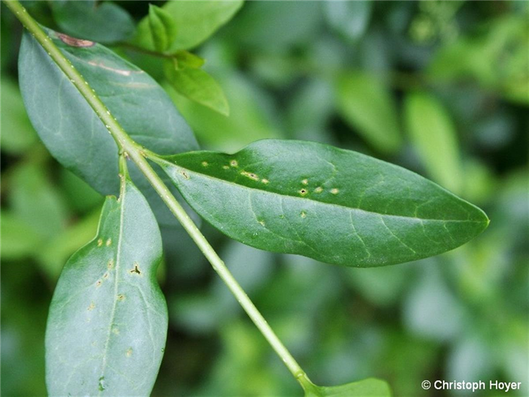 Die Blätter erscheinen deformiert und weisen meist kleinere Löcher auf.