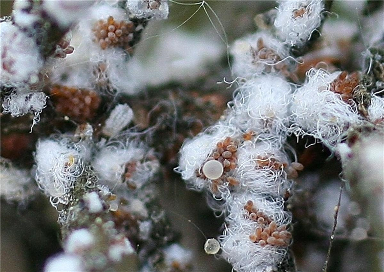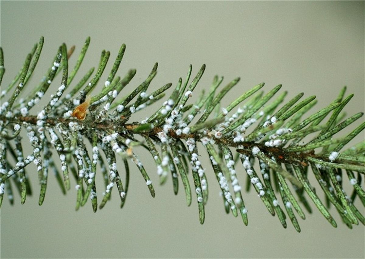 An Tannen und Douglasien sitzen an den Nadeln und jungen Trieben weiß gefärbte Wollläuse. Gelegentlich treten auch Arten auf, die die Stämme besiedeln.