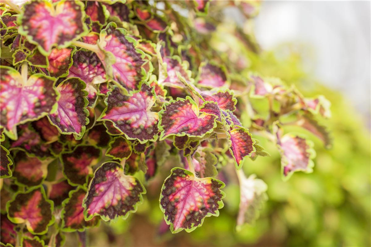 Zwischen den üppigen Flor passen nicht nur blühende Bindeglieder als Begleitpflanzen für Geranien. Da steht die große Welt der Gräser bereit. Zitronengras und Blauschwingel sind nur Beispiele. Aufrecht stehende oder geschmeidig überhängende Stängel, das ist Geschmackssache. Nun bleiben noch Bunt-Nesseln mit ihren individuellen Erscheinungsformen als Begleitpflanzen für Geranien und grüner Klee. Oder darf es noch etwas Besonderes sein? Da gibt es die wundervolle Schmuckblattgeranie mit ihren effektvollen Blättern. Die kleinen Blüten machen sich gegen den Flor der stehenden und hängenden Geranien recht bescheiden aus.