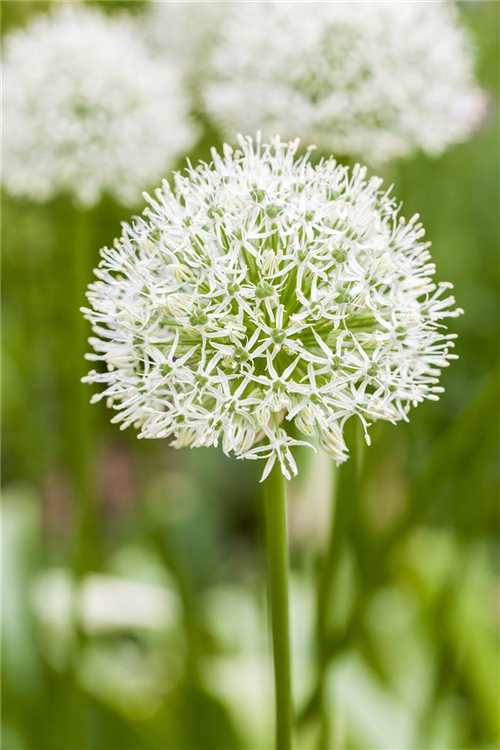 Große, majestätische Zierlauchsorten, die bis zu 150 cm hoch werden können, überragen häufig sogar Ziersträucher und erstaunen jeden Betrachter. Allium ‚Forelock‘, Allium giganteum , Allium ‚Gladiator‘ und Allium ‚Ambassador‘ heißen solche meist violett blühenden Riesen.