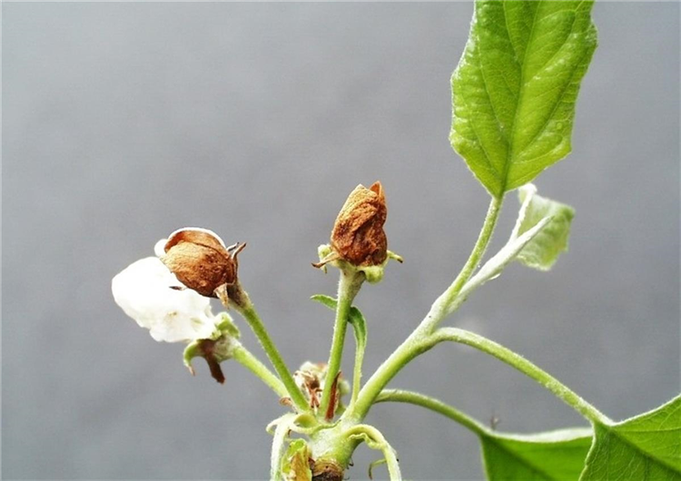 Ein Teil der Apfelblüten öffnet sich nicht. Sie bleiben im Ballonstadium stecken und vertrocknen. In diesen geschlossenen Blüten findet man eine gelbliche, fußlose Larve mit schwarzer Kopfkapsel oder die weißliche Puppe des Schädlings.