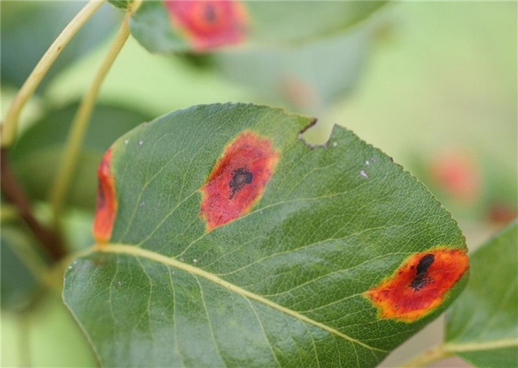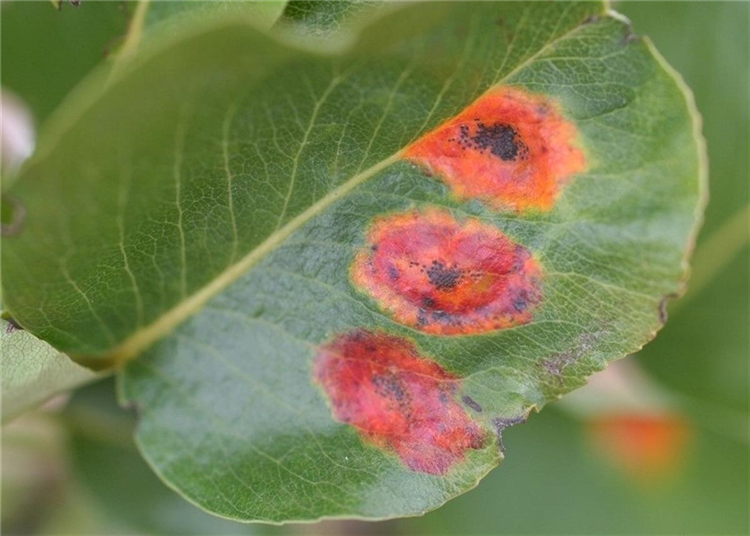 Die genannten Schäden werden durch einen Rostpilz (Gymnosporangium sabinae) verursacht, der neben der Birne auch verschiedene Wacholderarten befällt und dort den sogenannten Wacholderblasenrost verursacht.