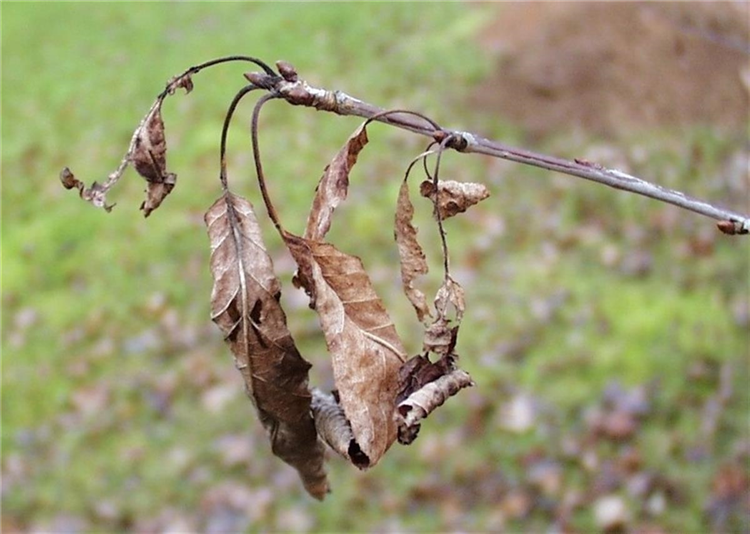 Die Blattbräune wird durch einen Pilz verursacht. Vor allem in regenreichen Frühjahren kann es zu stärkerem Befall kommen. Auf den abgestorbenen Blättern des Vorjahres bilden sich im Frühjahr Pilzsporen, die bei feuchter Witterung das junge Laub infizieren.