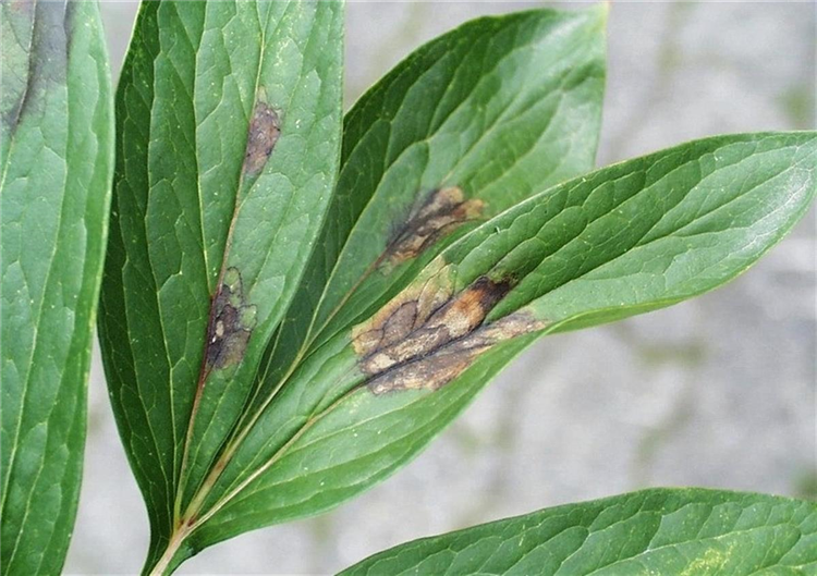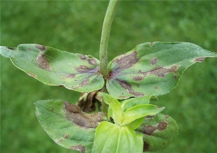 Auf den Blättern entstehen gelbe, braune oder graue Flecken. Zum Teil können die Blätter auch absterben.
