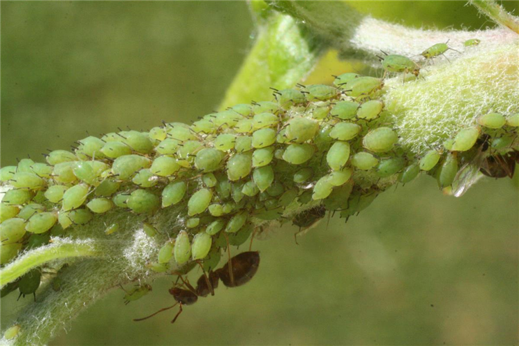 Die Grüne Apfellaus und die Apfelgraslaus können in größeren Mengen auftreten, verursachen aber nicht so starke Triebdeformationen wie die Mehlige Apfelblattlaus.