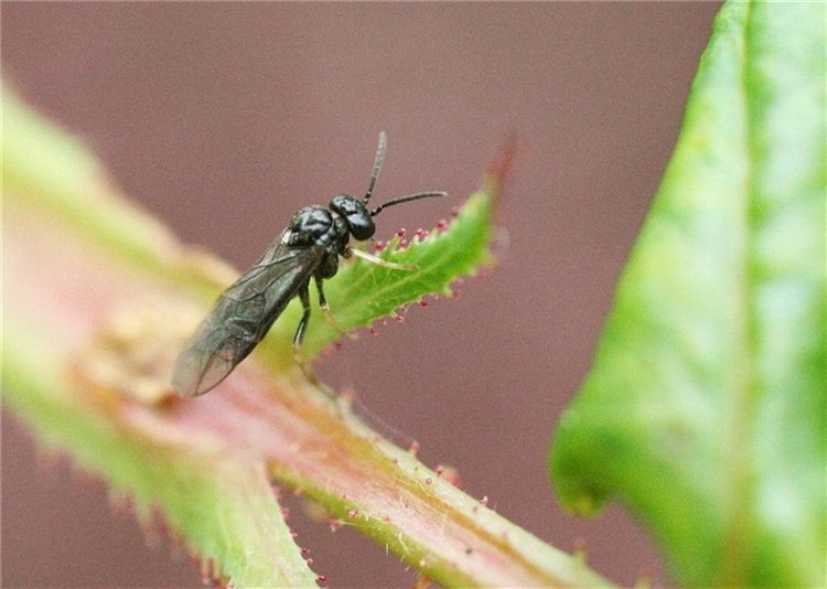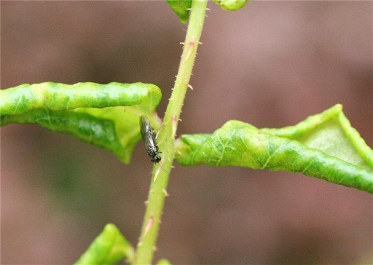 Die unscheinbaren Rosenblattrollwespen (Blennocampa pusilla) stechen bei der Eiablage das Blatt an, das sich anschließend in der beschriebenen Weise einrollt. Die blassgelben bis grünlichen Larven leben geschützt in der Blattrolle. Im Hochsommer verlassen sie die Rosenblätter, um sich im Boden ein Versteck zu suchen. Dort überwintern sie und verpuppen sich im kommenden Frühjahr.