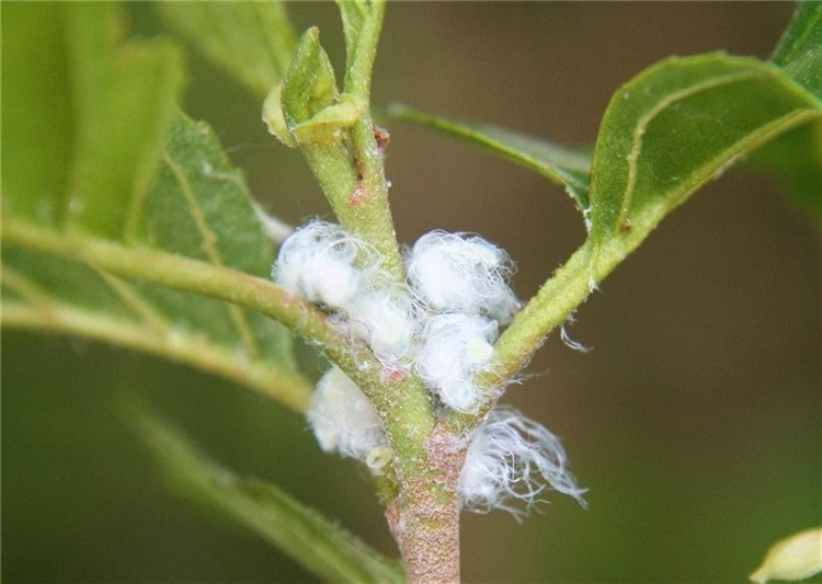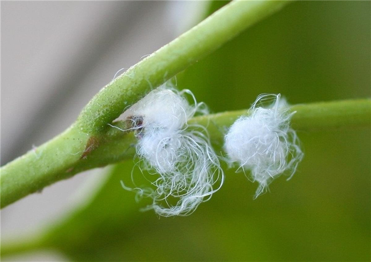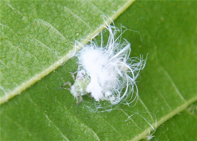 Diese zuckerhaltigen Ausscheidungen findet man als kleine Tröpfchen, die von einer feinen Wachsschicht umhüllt sind, in der Nähe der Blattsaugerkolonien.