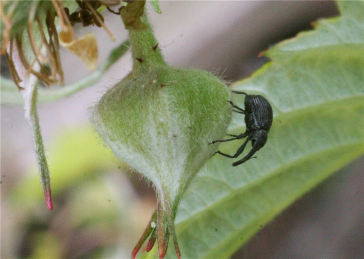 Der Blütenstecher (Anthonomus rubi) ist ein kleiner Rüsselkäfer, der seine Eier in die Blütenknospen von Erdbeeren, Brom- und Himbeeren legt, wo sich die weißlichen Larven entwickeln.