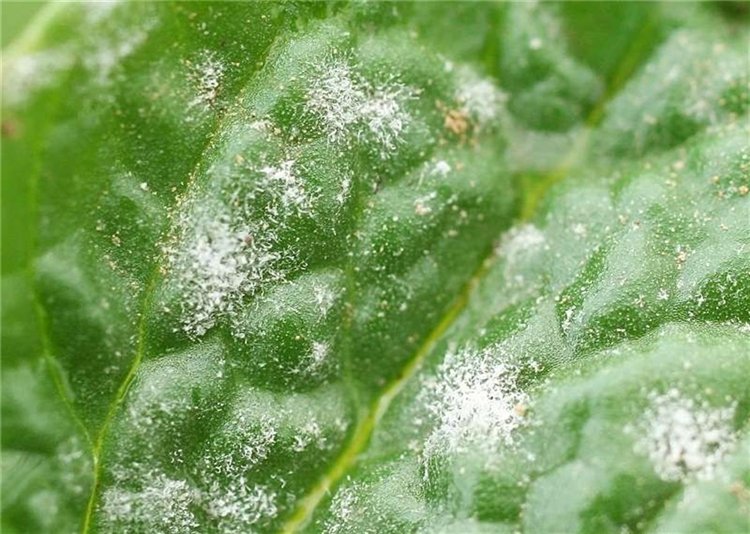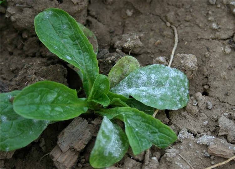 Echter Mehltau tritt an Feldsalat meist in trockenen Frühherbstperioden auf. Über Sortenwahl und Kulturmaßnahmen lässt sich der Befall nicht verhindern.