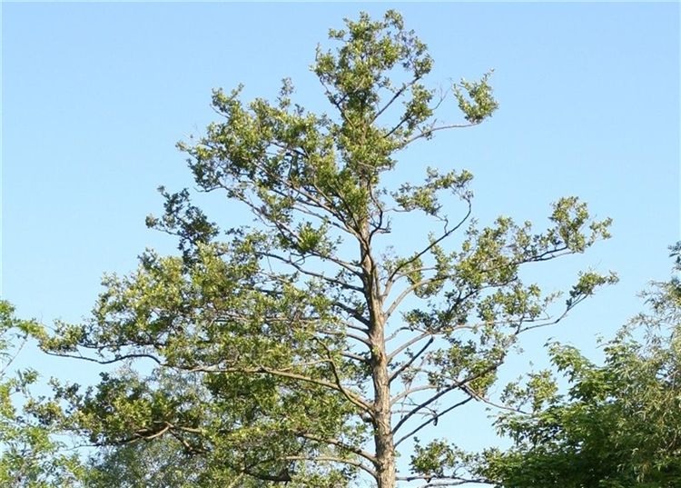 Vor allem entlang von Bächen und Flüssen sterben Bäume ab. Anfangs zeigen betroffene Erlen eine schwache Belaubung. Später geht der ganze Baum ein.