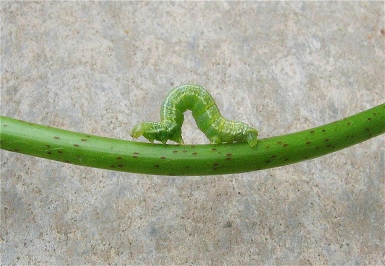 Im Frühjahr zeigen junge Blätter und Triebspitzen Fraßstellen. Meist werden die Schäden erst ab Mitte Mai wahrgenommen. Zu diesem Zeitpunkt sind die grünen Larven des Kleinen Frostspanners (Operophtera brumata) deutlich zu erkennen. Auffällig ist die schiebende Art der Fortbewegung, bei der sich der Körper abwechselnd katzenbuckelartig krümmt und wieder streckt.