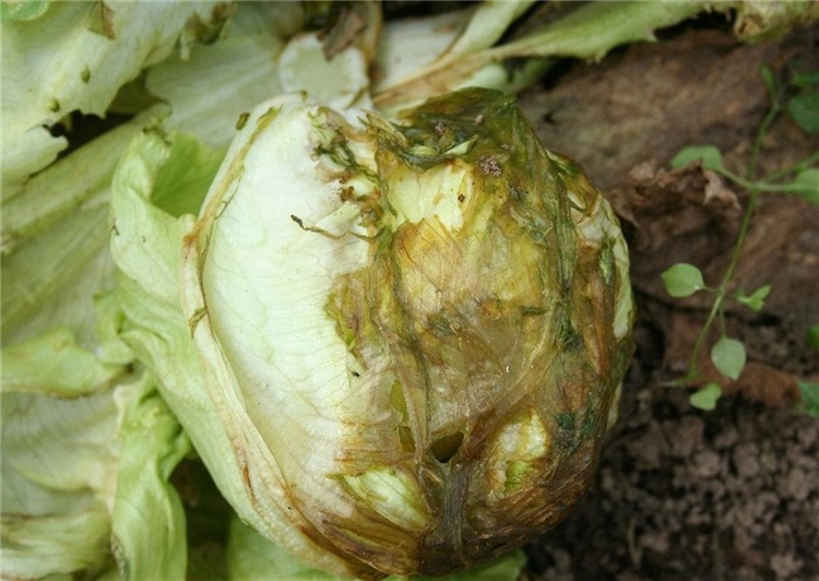 Salatpflanzen beginnen entweder sehr bald nach dem Pflanzen oder kurz vor der Ernte an den Blattstielen und am Stängelgrund zu faulen. Der Befall beginnt häufig an den untersten Blättern, die am Boden aufliegen.