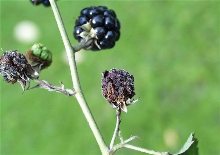 Reifende Früchte beginnen zu faulen und zeigen einen grauen Schimmelrasen. Junge, noch unreife Früchte vertrocknen.