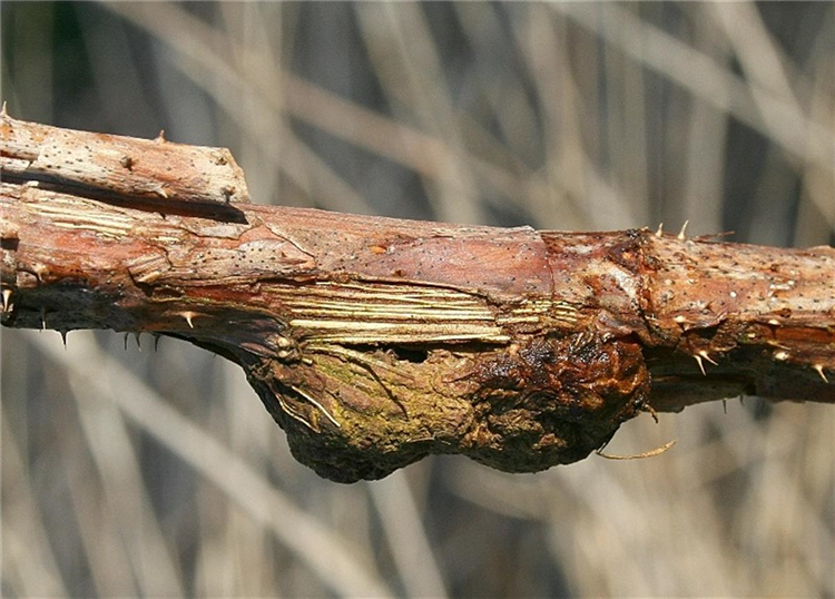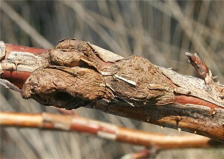 Befallene Triebe, die an den typischen Gallen zu erkennen sind, sollten rechtzeitig entfernt werden.