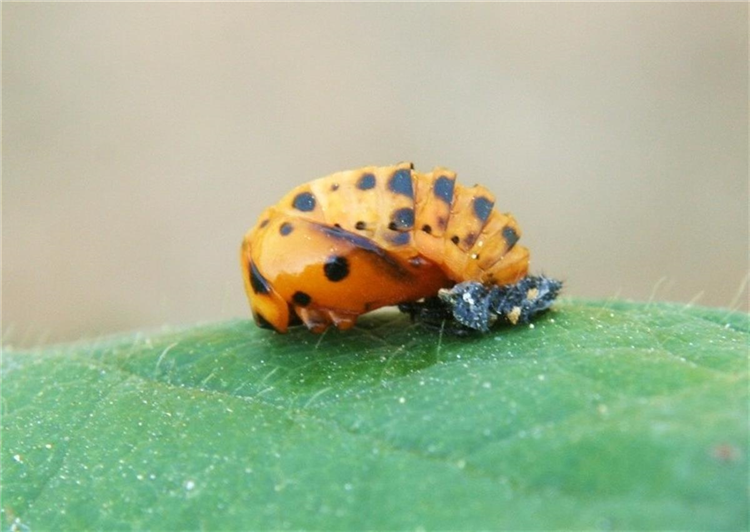 Alle Marienkäferarten legen Eier, aus denen die Larven schlüpfen. Bei den bekanntesten Arten sind diese grau bis grau-blau mit farbigen Punkten. Die Verpuppung findet häufig an Blättern und Trieben statt.
